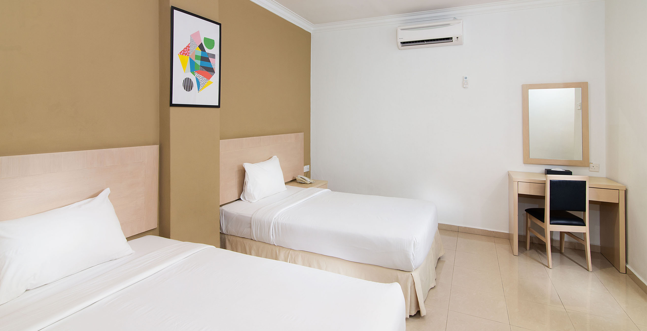 - Kamar tidur kedua dilengkapi dengan 1 tempat tidur Queen atau 2 tempat tidur Single